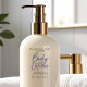 A transparent label for bottles featuring the words "Body Lotion" in holographic glitter and space for your company name, product scent, and product size.