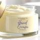 A transparent label for bottles featuring the words "Hand Cream" in holographic glitter and space for your company name, product scent, and product size.