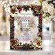 Unique wedding invitations with a steampunk theme. Shiny metal flowers in gold, copper and burgundy border this transparent acrylic wedding invitation.