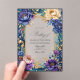 Make a bold statement with this luxurious transparent wedding invitation featuring a vibrant floral frame in teal, purple, and gold hues. Designed with elegant typography and a rich color palette, this invitation is perfect for sophisticated and romantic weddings. Fully customizable with your event details, it’s an ideal choice for setting the tone for your unforgettable day.