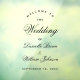 All text is black. The word Wedding and the names are written in an elegant calligraphic script, the rest in caps. The words "Welcome to" are curved as arched text above all.