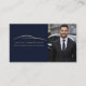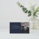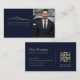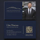 Blue and gold transport car business card featuring a photo and QR code for a polished, professional look. Designed so clients can quickly save contact details or access booking links while showcasing a refined transport brand. Ideal for chauffeurs, executive transport services, private drivers, and luxury car services. Editable text and QR destination. Clean print-ready layout.