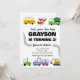 This truck and car birthday invitation is ideal for transportation themed birthday parties, toddler birthdays, and vehicle themed celebrations.
