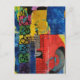 A mixed media collage by the artist Angelandspot and photographed by Angelandspot with vintage children's book pages showing trucks and bicycles that I randomly used in a bright colored collage and then used pastels, highlighters, and paints on to make random marks.
