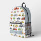 This cute and modern transportation boy's backpack features a white background with vehicles such as a police car, fire truck, car, first aid, taxi, pizza truck, moped, school bus, garbage truck, excavator, and tractor. Change your background color and personalize for your needs. You can find more matching products at my store.