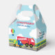 Cute transportation theme favor boxes with car, plane, truck, fire engine, train, and hot air balloon.