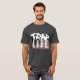 My 11 yo wore adult XL (5’7” 165#). The 8yo is small framed. She wore adult small and tied it in the back. Grandma wore adult large with long sleeve shirt underneath. Tall girl adult medium. Dark haired male adult large. Good quality dark Heather gray, Gildan brand shirt. -it was next up from basic choice and cost about $20 per shirt. Not too thick or thin. Washed and dried well, no major shrinkage. Not see-through. Can wear a bra under it fine. Screen print is just as shown and well done, front and back.