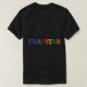 My 11 yo wore adult XL (5’7” 165#). The 8yo is small framed. She wore adult small and tied it in the back. Grandma wore adult large with long sleeve shirt underneath. Tall girl adult medium. Dark haired male adult large. Good quality dark Heather gray, Gildan brand shirt. -it was next up from basic choice and cost about $20 per shirt. Not too thick or thin. Washed and dried well, no major shrinkage. Not see-through. Can wear a bra under it fine. Screen print is just as shown and well done, front and back.
