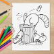 Trash Can Raccoon Coloring Page Rubber Stamp