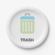 An icon of a trash can with the word trash underneath. This design looks really effective on these Paper Plates