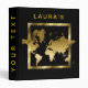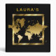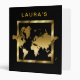 Clean world map in gold on black surface for presenting all data of events in a binder