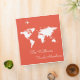 Orange red plain background with a white map of the world, and your own family name in a script font-style with custom words 'Travel Adventures'... to collect photos and memories of your travels around the world