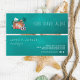 Vintage style summer holidays logo (you can replace it with your own) on a blue teal background making a retro bold colorful promotional travel agency business card with website and social media contacts.