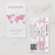 Passport Travel Agency Glitter Gold World Map Boarding Pass Business Card with pink background for makeup artist, lash extension, event planner, travel agent, hair stylist, nail artist