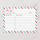 Travel Airplane Recipe Card, Bridal Shower Wedding Invitation Postcard