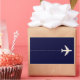 A graphic image of a white airplane with a straight dotted line ( flight path ). You can use the 'customize it' tool if you want to change the blue background color. A simple travel related design. A good suggestion for people who work for airlines and who travel on planes