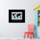 A graphic map of the world with a black frame and a travel inspirational text: 'A journey of a thousand miles must begin with a single step' by Lao Tzu philosopher