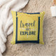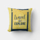 Show off your adventurous spirit with this fun "Travel And Explore" Pillow. Bright yellow/white stripes and navy blue background with a stitched note that says; "Travel and Explore" topped with a bright yellow and white polkadot bow.