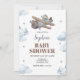 Travel Cloud Star Sky Boy Blue Airplan Baby Shower Invitation
