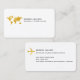 A modern and minimalist business card with basic information only... your name ('unica one' font style) with custom travel related occupation (travel consultant) and the image of a faux gold map of the world and a plane... and address, email and phone at the back... on white (paper color) background.