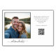 These destination photo table number cards with QR Code for photo sharing are perfect for your wedding reception! Simply choose a photo of you at every destination you are using as a table name. This is a fabulous way to share photos of you as a couple at special destinations and a great way to ask guests to upload their photos of you to your wedding website. Your guests will love sharing their fabulous photos of your wedding and reception with you. It is so easy to make these cards your own. Simply select "Personalize this Template", upload your photo, type in your qr code URL, and type in your destination table name then add to cart. Repeat for how ever many tables you will be having at your reception.