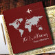 Dark-red (bordeaux) binder... personalised with your own family name and title... with graphic image of the worldmap and an airplane