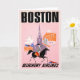 Vintage travel poster for Allegheny Airlines showing Paul Revere on horseback, the Old North Church, the Mayflower ship, and Faneuil Hall in Boston, Massachusetts. circa 1950.