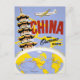 China, the overland route. Northwest Orient Airlines. Vintage travel poster showing a pagoda and an airplane, above a Northwest Orient Airlines system map, circa 1950.