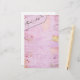 Travel stationery with pink and cream background with faded maps, water marks, cancel marks and stamps. Perfect for the traveller. Travel Notes in script font in pink luggage tag.