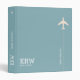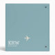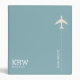 A simple and modern light blue binder with the graphic image of a white airplane, your name and initials... and special travel subject.
