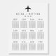 Direct guests to their tables at your travel themed wedding with this unique seating chart that features airport codes in lieu of table numbers. Simple black and white design features your names and airport codes in electronic style dot lettering, with your guest names listed beneath. An airplane icon illustration at the top completes the design.