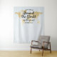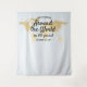 Arrived quickly and looked great! Had to steam out the wrinkles from shipping but it was easy to do! I added gold curtains to the sides to extend the photo backdrop area. I changed the color to royal blue! Perfect! The printing looked just like the photo online! Excellent job!