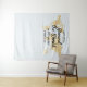 Custom Personalized "Around the World" theme Party Backdrop for a photobooth or selfie station at a travel theme birthday party with their name, age, and party or birth date printed on a soft fabric tapestry with our yellow gold color world map and a light blue background. The type style is reminiscent of fonts used on vintage maps and old globes, but the design is simple so that your guests are the ones who shine in each photograph taken at the entryway of your event.