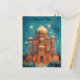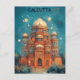 This travel postcard, in modern digital illustration style, inspired by the view Birla Temple of Calcutta India.