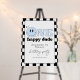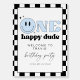 This one happy dude first birthday welcome sign features a fun retro font and blue smiley face with a checkered background. This welcome board is perfect for your little man to celebrate his first big birthday! Pair with anything in the TRAVIS Collection for a cohesive look.