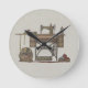 Treadle Sewing Machine & Kittens Round Clock