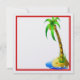 Square pearl shimmer invitation with an image of a cartoon peg-legged pirate with his foot upon a treasure chest and a parrot on his arm. Beside him is a cartoon image of a deserted island with a palm tree and coconuts. The back has the cartoon image of the island and space for your party details bordered in red. See matching label and sticker. See the entire Shipwreck Invitation collection in the INVITES | Invitations & Cards section.