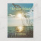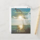 This Florida postcard features a photograph of the sun setting at Treasure Island. The Gulf of Mexico waters are calm and sea oats are growing out of the white sand onshore. This card is customizable.