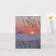 Card features photo of sun setting on the beach at Treasure island, Florida.