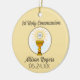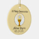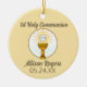 Lightweight, smooth, pure white ornament with nice sheen. Perfect size to be seen from across the room ... and to attract closer inspection! Price was great for ordering enough for the whole family! Clear, bold black design just as requested. Matches the order exactly. Just so nice!