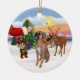 Santa offers a treat to his Boxer as the elves load the sleigh before the big night.