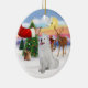 Lightweight, smooth, pure white ornament with nice sheen. Perfect size to be seen from across the room ... and to attract closer inspection! Price was great for ordering enough for the whole family! Clear, bold black design just as requested. Matches the order exactly. Just so nice!