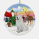 Santa offers a treat to his Samoyed as the elves load the sleigh before the big night.
