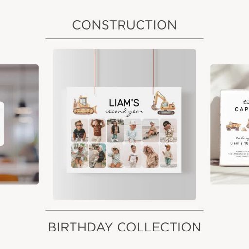 Construction Trucks Modern Minimal BirthdayDesigned by Heather Svoboda