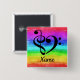 This composite bass clef and treble clef musical heart design is presented over a rainbow watercolor stripes background. Personalized button makes a thoughtful gift for any music teacher, composer, music student, singer, songwriter, music lover, DJ, or musician. Wear this music themed button on stage, to concert practice, music class, recital, or any time you want to share your appreciation for music. Customize with a name, musical instrument, or any other text. Design tip: Size and position text to float pleasingly in the space below the heart image.