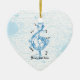 Blue scrollwork sol note key custom ornament, featuring the sol note key in blue scrollwork style and black notes.