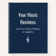 Simple musical business classic navy blue notebook, with a white treble clef symbol and customizable lettering. Great for staying organized in your music lessons or musician performing business.