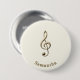 Add a musical touch to your style with this personalized round button, featuring a stylish faux gold treble clef design on a soft cream background. Perfect for music lovers, this cute pin badge adds a flourish to any outfit. This harmonious accessory is ideal for music lovers, and can be personalized with a name for an individual finishing touch.