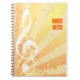 There's no mistaking what this notebook might be used for. A treble clef overlays bright yellow-orange beams with swirls overprinting. Add your own message to use this as a songwriting notebook, add a name to personalize it for music class or use it as a journal. Available in alternate colors with matching products.