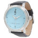 A simple, plain design featuring a cute tiny treble clef symbol on a light blue background. Perfect for everyone who loves minimalistic styles. Easily personalize this watch to your name or text.